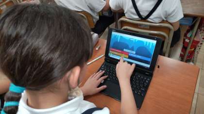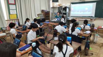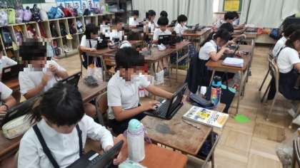 4年生は、「カフート」というアプリを使って、社会科で学習したことをクイズ化して学習していました。夏休みに全教員で研修して、だれでも「カフート」を使って、学習のまとめができるように研修を考えています。ゲーム化・クイズ化することで、児童の意欲が高まります。