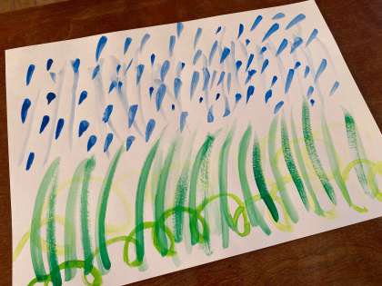 パレットにいくつかの色の絵の具を出し、水加減を意識しながら、楽しんでいろいろな線を引いていました。