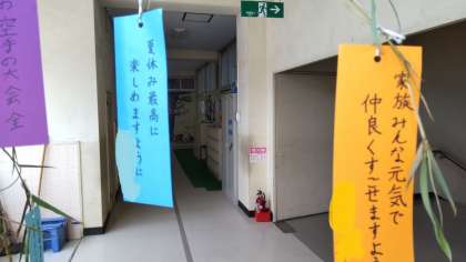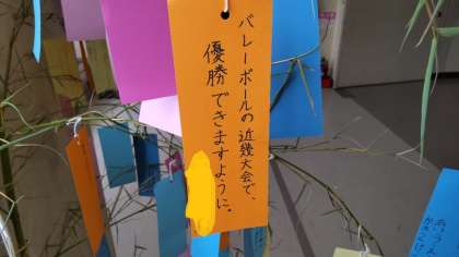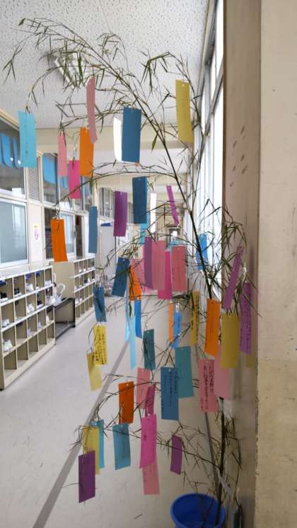 6年生の廊下を通りかかると、七夕の笹がありました。短冊にはいろいろな願い事が描かれてありました。楽しみにしている夏休みのこと、家族のこと。中には「毎日、焼き肉が食べられますように」という願い事もありました。