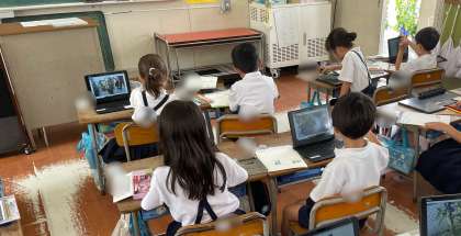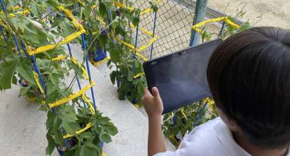 アサガオの花をタブレットで撮影して、生活シートに成長の様子を記録しました。紫やピンクなど鮮やかで可愛い花が咲きました。