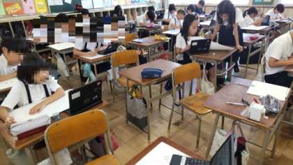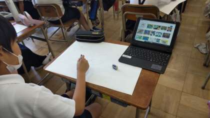5年生は、平和のポスターをタブレットを使っていろいろなパーツを探しながら「平和のポスター」を描いていました。9月に、今川のライオンズクラブが主催するコンテストにに出品します。今年のテーマは「限りない平和」です。ウクライナやイスラエルの戦争がやみません。思いを絵に乗せて書いていました。参加した人は、図書券500円分、全員もらえます。