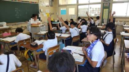 6年生の算数は、1学期に学習する内容をすべて終わっているので、学習のまとめをしていました。時速、分速、秒速の復習をしていました。あと7日。8回目の登校が、1学期の終業式です。