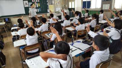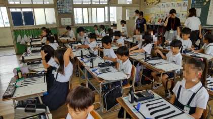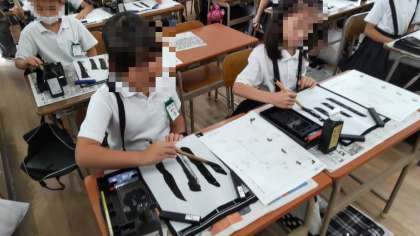 3年生の教室に行くと、「土」の書写をしていました。始筆・送筆・終筆を学習したあと、「トン、スー、トン」のリズムで筆を送っていました。3年生になって3文字目ですが、初めて「たて画」が入ってきました。子どもたちは集中して一言もしゃべらず書いていました。