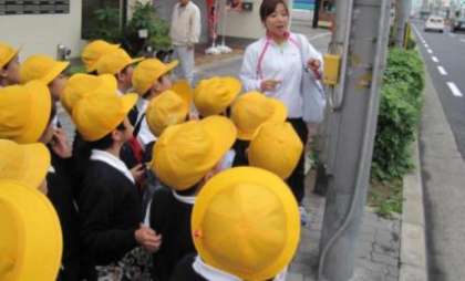 まず行きと帰りでは、「人にやさしい町」でどんな工夫をしているかを見つけました。