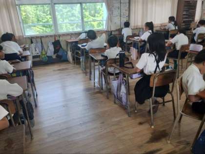 各教科でテストをしたり、学習の振り返りをしたりしています。セミが鳴くなか、みんな集中して頑張っています。