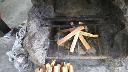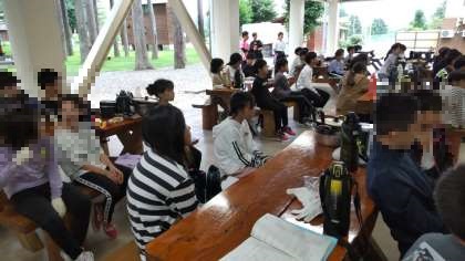 いよいよ、野外炊飯のはじまりです。宿舎の人から説明を聞いて始まりました。