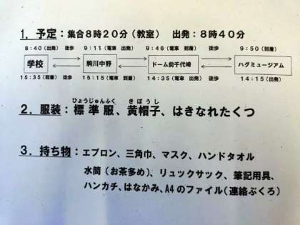 5年生 ハグミュージアム(社会見学・調理実習)説明