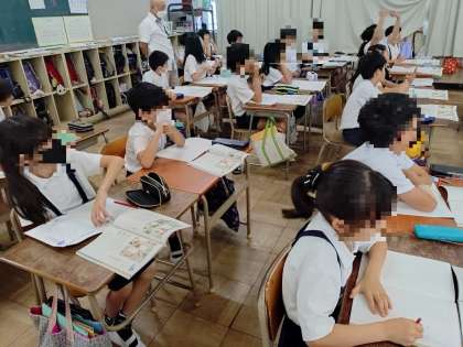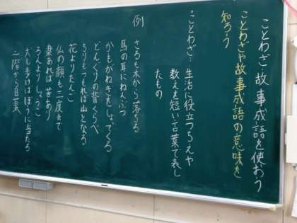 4年生保国語でことわざの学習をしていました。「猫に小判」「棚からぼた餅」「2階から目薬をさす」などです。