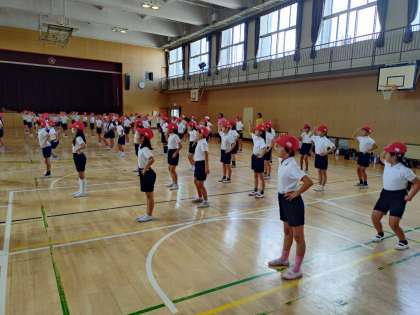 3連休が終わり、少し秋らしくなってきました。それに合わしたかのように、体育参観の練習が始まりました。全学年、団体演技の練習から入ってきます。