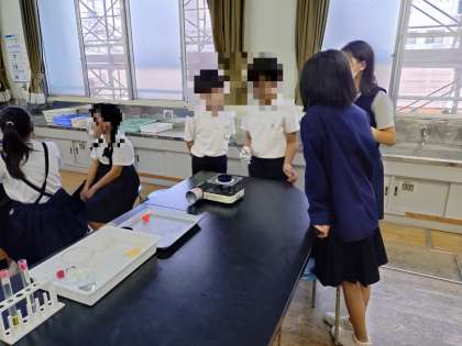 塩酸にアルミニウムを見えなくなるまでとかし、その液体の中に、金属(アルミニウム)があるのか、又は気体(あわ)になってどこかにいってしまったかについて、蒸発皿を使って調べていました。液体を蒸発させると白い粉が残り、それはアルミニウムが変化したものであることを調べていきました。