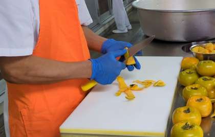 そして、旬の果物は和歌山県産の「柿(平核無柿)」です。1人1/4切れつきました。