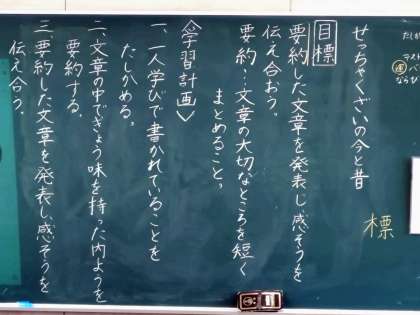 3年生の国語は物語文の「サーカスのライオン」が終わり、ジンザの気持ちや観客の気持ちを読み取ることが中心でしたが、今回の「せっちゃくざいの今と昔」は説明文で、書かれている内容を正確に読み取り、短くまとめていく(要約)の力を伸ばす単元です。
