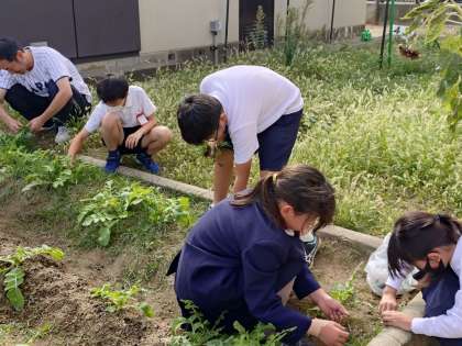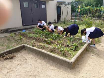 4年生の有志は、お掃除の時間に先生と一緒に「田辺だいこん」の雑草を抜いていました。「田辺だいこん」を「今川だいこん」と呼び、『早く大きくなあれ』と掛け声をかけてお世話をしていました。