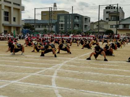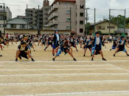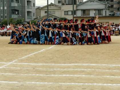 団体演技のトリは、6年生のソーラン節です。法被をマントのように使って、力強く表現できました。さすが、最高学年。
