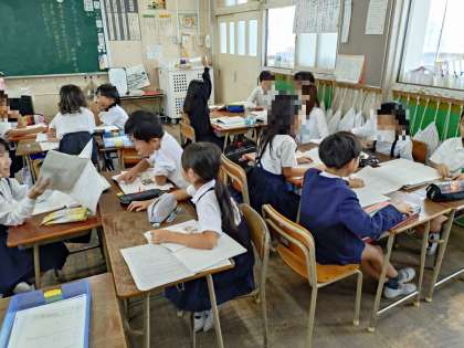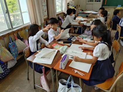 3年生の国語は【せっちゃくざいの昔と今】の学習をしています。昔の接着剤は、ご飯やでんぷんからのりを作っていましたが、今は石油溶剤からできています。また、かなり強力な接着剤ができていなす。そんな、昔と今の接着剤の材料や用途を詳しく読み取りながら学習が進んでいました。教材をきゅ箇所でなく、A41枚の紙に印刷し、違いを構造的にとらえっていました。