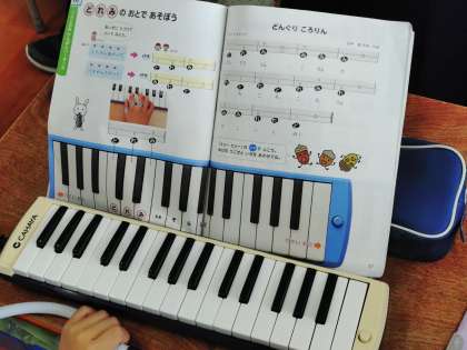1年生の教室から鍵盤ハーモニカの音が流れてきました。