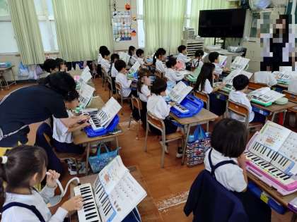 1年生 音楽「鍵盤ハーモニカの指使いの学習」