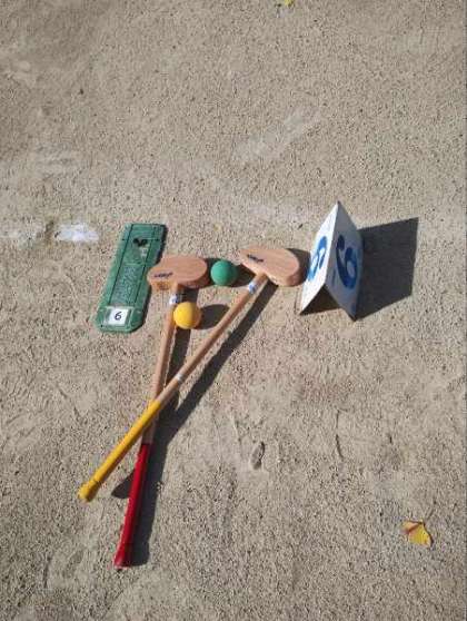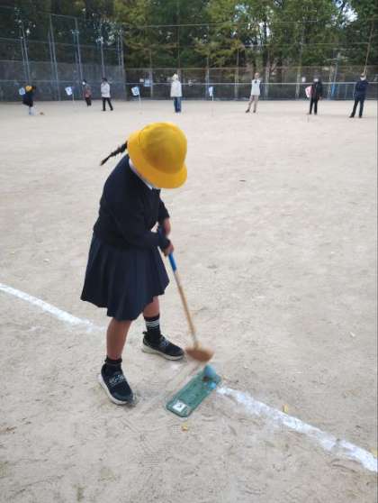今日は3年2組がグラウンドゴルフ体験をしました。目指せホールイン!と、応援し合いながらボールを打っていました。