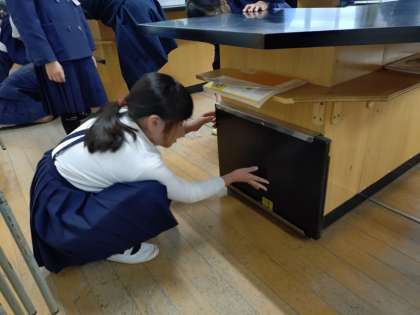 そこで、最初に理科室の使い方や約束の学習がありました。各般のテーブルの水道の蛇口の板を外た時のしまいかた、椅子のかたづけ方、椅子が丸椅子になっているわけ、雑巾のかけ方、試験管などのガラス製品の名前や洗浄方法など、基礎的な約束の学習をしていました。