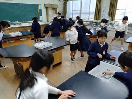 4年生は理科で「ものの温度と体積」の単元に入りました。理科室でこれから本格的な実験が始まります。「物の温まり方」「氷・水・水蒸気」など理科室を使うことが多くなります。