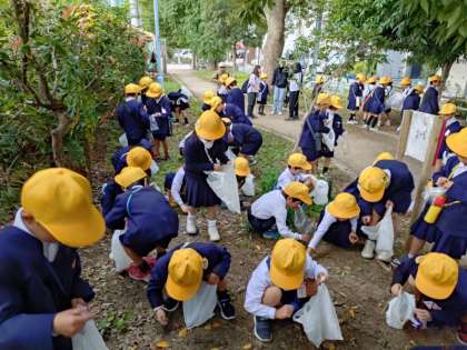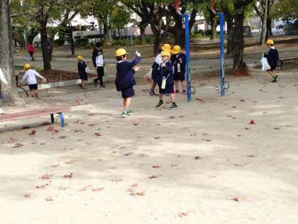 1年生は白鷺公園に出かけ、ドングリを拾ったり、黄色や赤に色づいたはっぱを拾ったりして秋を感じていました。ドングリは、シラカシの実、葉っぱはイロハカエデやタイワンフウ、イチョウだったのですが、1年生は木の名前には興味がなさそうでした。学校でドングリゴマや落ち葉の帽子を作ろうね。