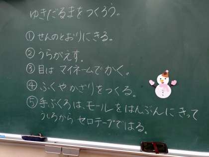 来月の玄関掲示の学年は1年生みたいです。「大きなかぶ」の絵が完成した人から、自分の「雪だるま」を作っていきます。もうすぐ12月ですね。楽しいお正月、楽しいクリスマスの前に、2学期の学習の総まとめが待っています。