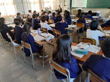 4年生は、昨年度の学力経年変化の問題を解いていました。40分が所定時間ですが、問題文がどの教科も長い傾向にあります。