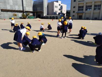3年生は、運動場に出て、虫眼鏡で太陽の光を集めて、黒い画用紙にあてていました。光が点にまとまったときに、煙を出して黒い画用紙を焦がしていました。太陽の位置を意識しながら、虫眼鏡の光を円にして、紙から遠ざけたり、遠ざけたりしていました。炎がつくかもと思って、先生はバケツに水をくんで警戒していました。