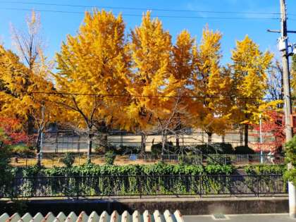 今川公園のイチョウが、黄色に染まりました。まだ緑の葉をつけているイチョウの木もありますが、本当にきれいに見えます。