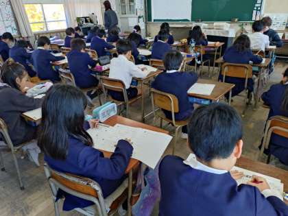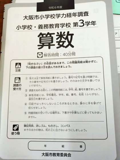 今日は「大阪市経年調査」の2日目です。学校中がシーンとしています。3年生以上の人が真剣な表情で調査用紙に取り組んでいました。