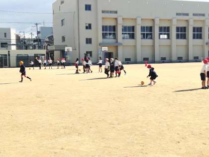 2年生は、今シーズン最低気温の2度の中、元気にサッカー型ゲームの練習をしていました。体があったまって、半そでの体操服一枚の児童が多かったです。寒さに負けず、強い体を作りましょう。