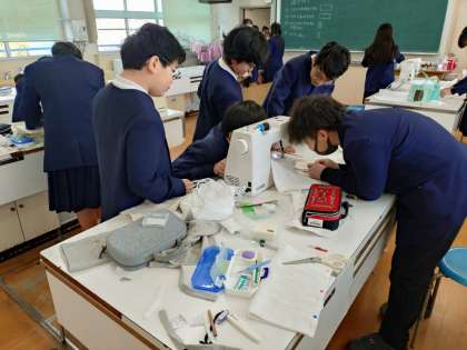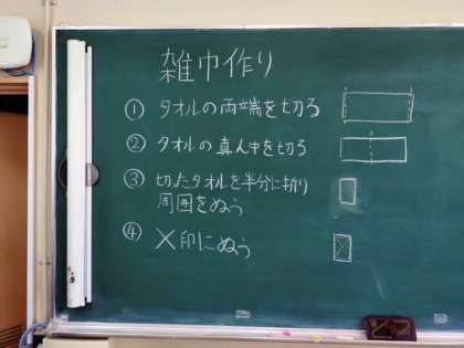 6年生は卒業に向かってまっしぐらです。1年生〜5年生にプレゼントする「雑巾づくり」に取り組んでいます。タオルをミシンで縫っていきます。2月21日の卒業生を祝う会で渡すつもりです。。