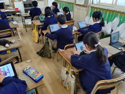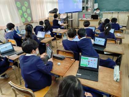 2年生はICT支援員のかたにタブレットを使ったゲームの作り方を教わっていました。