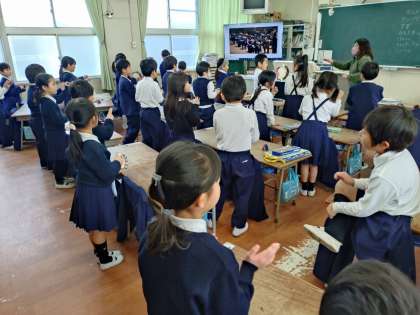 1年生 音楽「カルメンの曲に合わして打楽器をたたいてみよう」