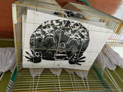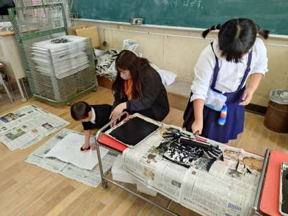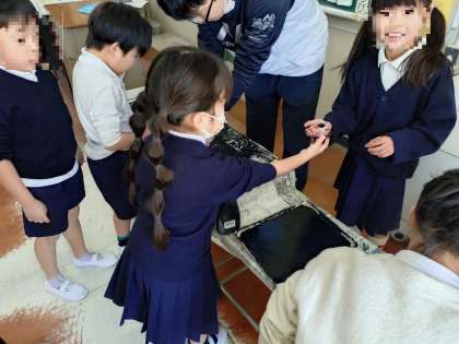 1年生「紙版画の刷り」