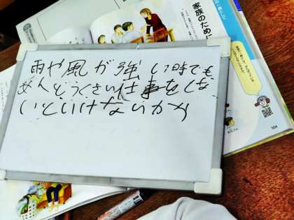 2時間目に道徳の授業がありました。家の仕事について考える教材でした。