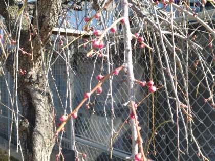 学校の卒業記念樹のところにある「しだれ梅」の花芽が膨らんできました。もうすぐ開花かなと思います。あとひと月ちょっとすれば卒業式ですね。