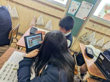 最後の集大成として、ジュニア栄養士になって給食の献立を考えました。考えた献立の栄養価をアプリで確認しバランスがよくなるように改良しました。