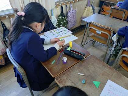 3年生の算数では最終単元の「二等辺三角形や正三角形の作図や特徴」を学習しています。コンパスを使って作図したり、核の大きさを比べたりしています。いよいよ学年の総まとめです。