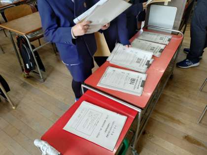 今日は、3年生以上の学年に、12月に受けた「大阪市学力経年調査」の結果表や問題用紙を返却しました。点数だけを見るのではなく、何が間違ったのか、間違ったところをしっかりと復習してほしいと思います。