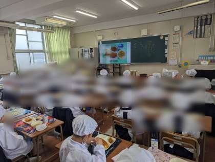 各教室では、グラタンがおいしいと大好評でした。1年生と2年生の教室では、意外にもソフト黒豆が大人気でした。「やわらかい!」「豆苦手だけど、この黒い豆がおいしい!」と好評でした。