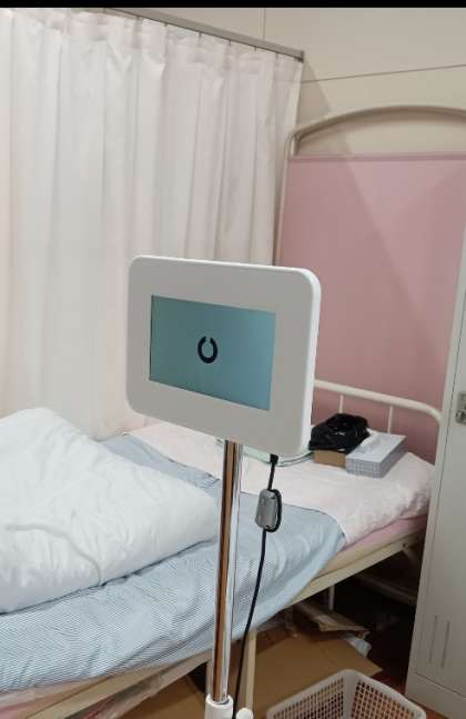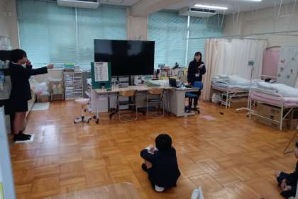 視力検査もデジタル化がすすんでいます。タブレットに映して検査しています。子どもたちは「右」「下」と言いながら、指さししています。
