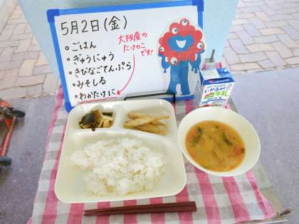 「大阪産のたけのこなんだ!」「きびなご好き!!」「今日の組み合わせ最高!」と好評でした。