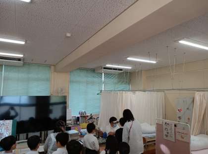 学校医さんが来られての検診がスタートしました。本日は耳鼻科の検診でした。