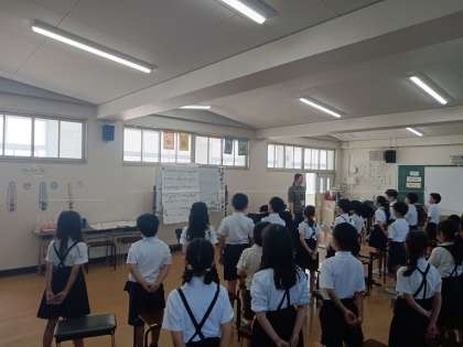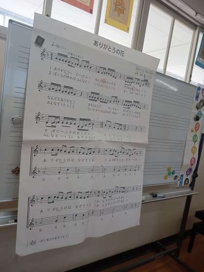 発声の練習をしてから、「ありがとうの花」を合唱しています。