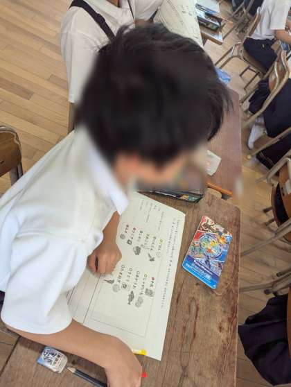 感想では、「苦手でも1口はチャレンジします!」「野菜がんばって食べます!」等、苦手な食べ物にも挑戦するぞ!という意気込みが書かれていました。給食の時間では、苦手な食べ物に挑戦している姿が見られました!