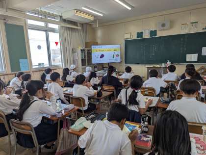 「今日の豚丼すごくおいしい!(4年生)」「きゅうりとかつおがよく合って最高(4年生)」「今日の野菜は90g入ってるからいっぱい食べる(4年生)」「野菜好き!(4年生)」と、児童に好評でした。