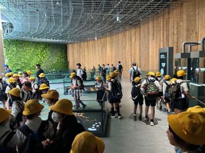 日本館の見学の様子です。藻類や微生物の働きについての展示を見ました。