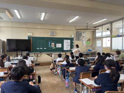 5年生では、「おやつについて考えよう」というテーマで栄養教諭と一緒に学習しました。