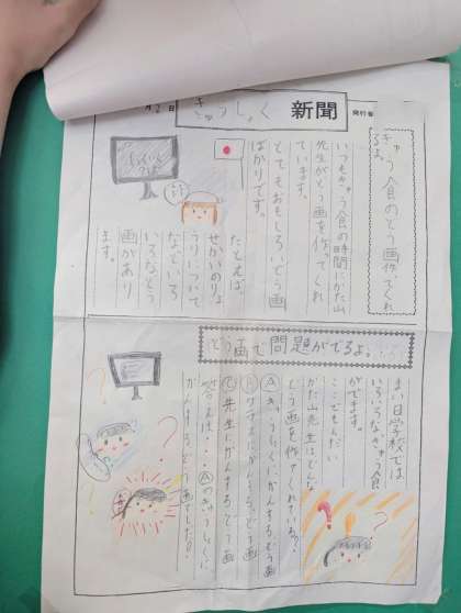 3年生の教室では、給食新聞を作っている児童がいました。